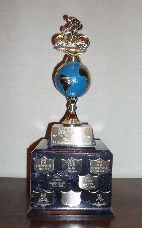 John Hathaway died June 6, 1997 at the age of 72 after a life of impressive cycling accomplishments. A time trialist from England, John immigrated to Canada in 1952. In 1957 he set the cross-Canada record of 24 days 13 hours, a record which stood for 20 years. John is perhaps best known for his many long distance rides including his around-the-world tour in 1974-76 (50,000 miles in 100 weeks) which earned him a spot in the Guinness Book of World Records, and his 48-state tour in 1992-93. John was also one of the four original BC Randonneurs at PBP in 1979, and was a fixture at BC Randonneur events in the years to follow.